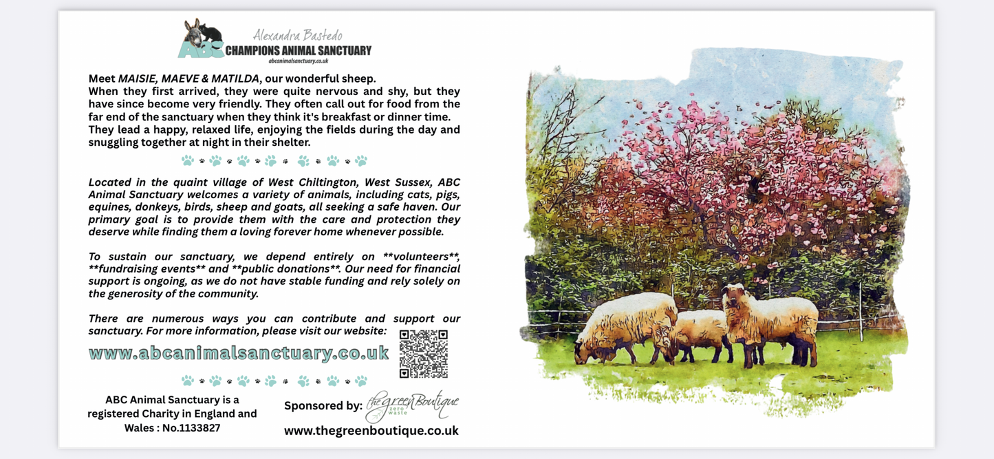 These beautiful cards celebrate some of the cherished animals from our sanctuary, each with a unique story to tell. We hope they bring you joy and connect you to the wonderful beings we care for.