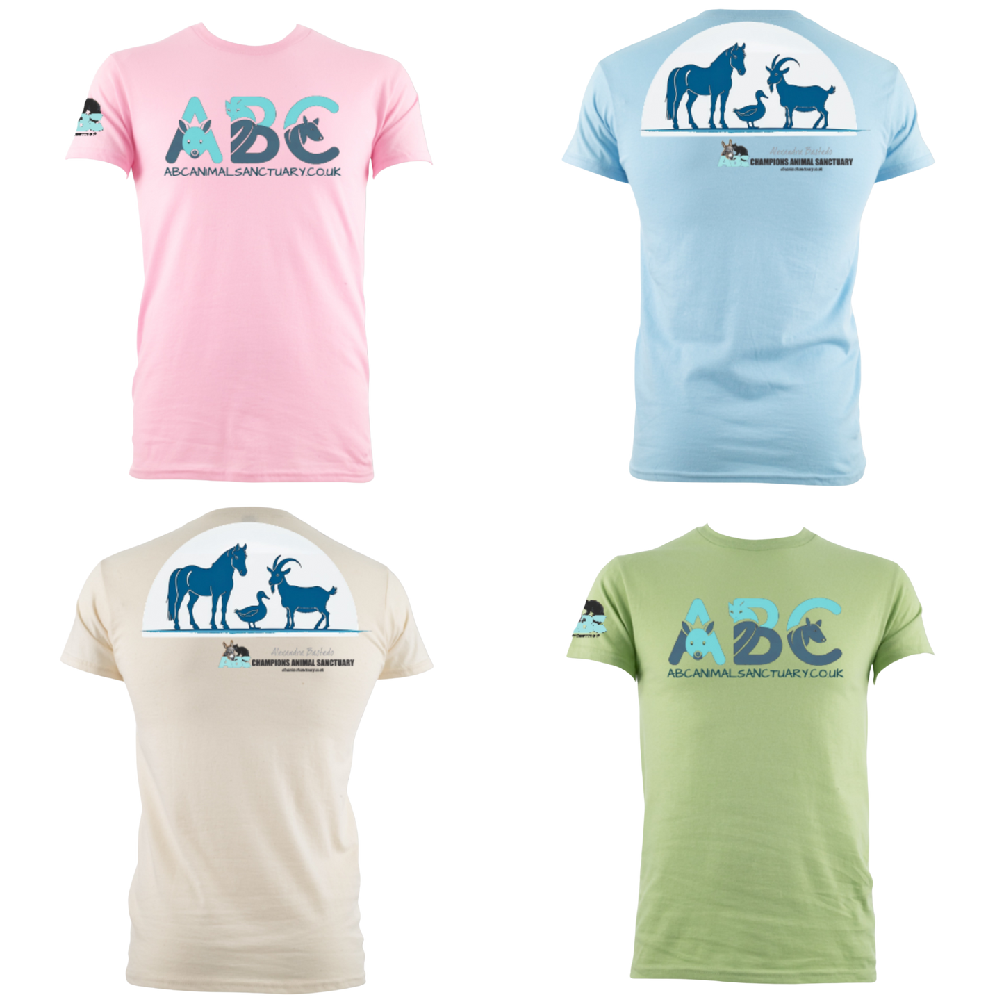 The ABC Animal Sanctuary short-sleeved unisex T-shirt comes in four vibrant colours and various sizes.